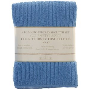 !9#Gourmet Classics 12- by 12-inch Cornflower Blue Microfiber Dish Cloth, Set of 4